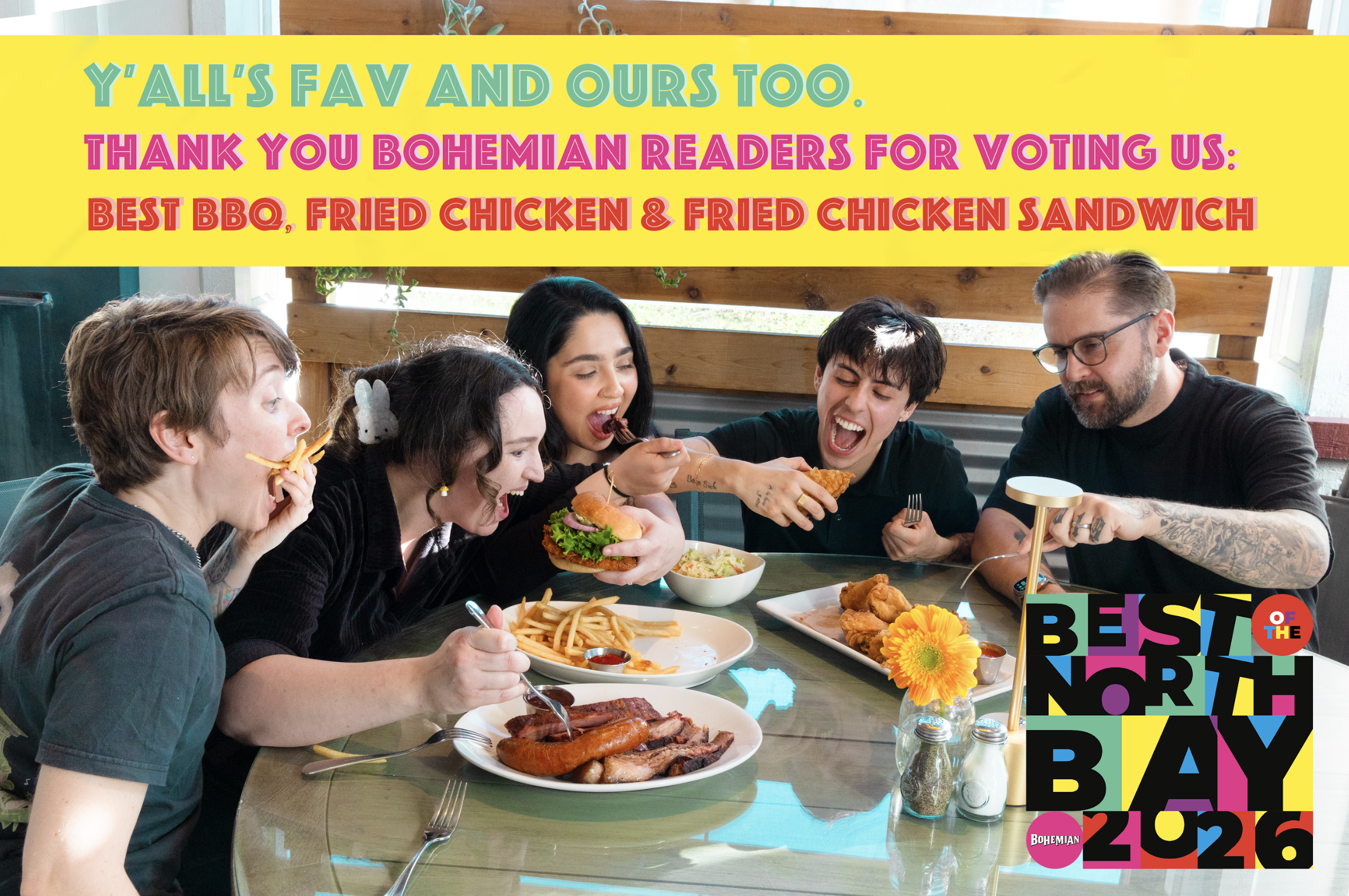 North Bay Bohemian: Best BBQ, Fried Chicken & Fried Chicken Sandwich! So much love to the Bohemian Readers! Thank you! See all the 2026 Winners Sweet T's Restaurant + BarMarch 27, 2026 Facebook0 Twitter LinkedIn0 Reddit Tumblr Pinterest0 0 Likes